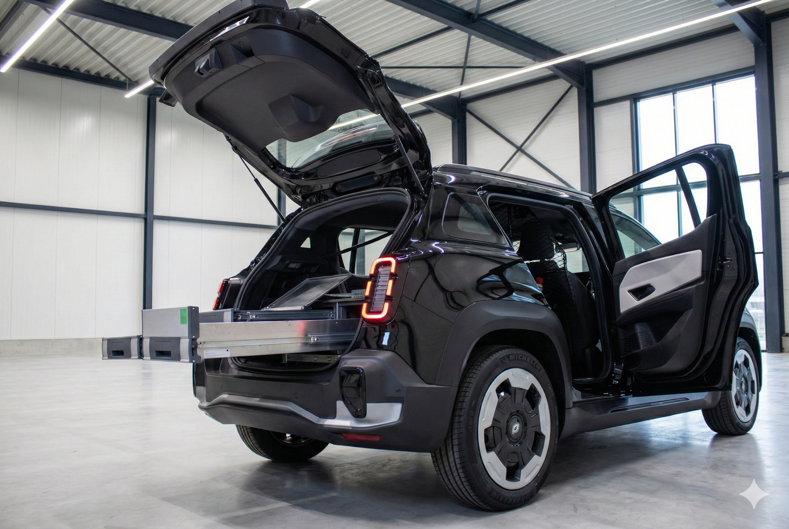 De Renault 4 E-Tech electric Van is een bedrijfsuitvoering van de volledig elektrische Renault 4. De auto is gehomologeerd als lichte bedrijfswagen met een maximaal gewicht van 3.500 kilogram. Met twee aandrijfopties, tot 413 kilometer actieradius en een laadvolume van 940 dm3 (VDA), biedt deze variant een praktische oplossing voor professionals in de installatiesector. De auto die Renault toont op VSK+E is voorzien van een custom inrichting van Bott/Instra. Complete persdossier Renault 4 E-Tech electric Van.